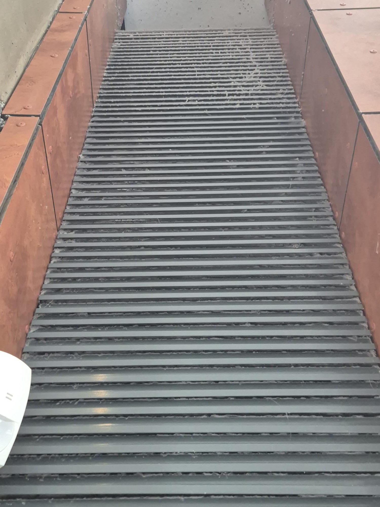 - Das Gitter der Abluftanlage ist stark verschmutzt.