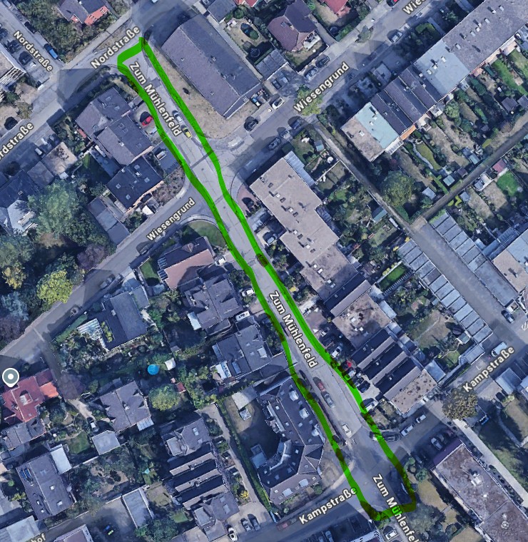 im vergangenen Jahr wurde in der Straße „Zum Mühlenfeld“ im markierten Bereich die Fahrbahn instandgesetzt. Bereits heute sind dort mindestens 15 Schäden in Form von quer verlaufenden Rissen über die gesamte Fahrbahnbreite festzustellen. Kleinere Schäden wurden dabei nicht mitgezählt.
